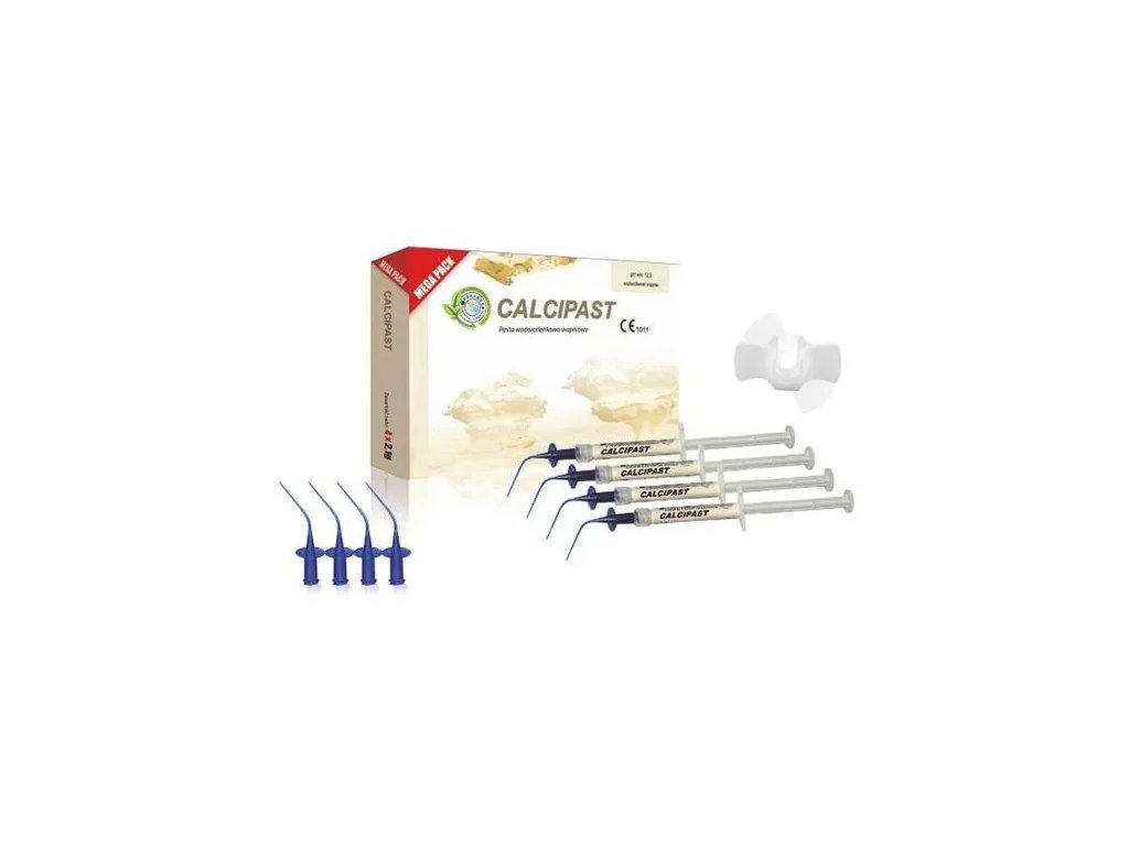 POUŽITÍ: Výrobek CALCIPAST se používá při zubním ošetření jako materiál pro dočasnou výplň kořenového kanálku. Navíc lze výrobek CALCIPAST použít jako dočasnou výplň hlubokých kavit při přímém a nepřímém překrytí pulpy.