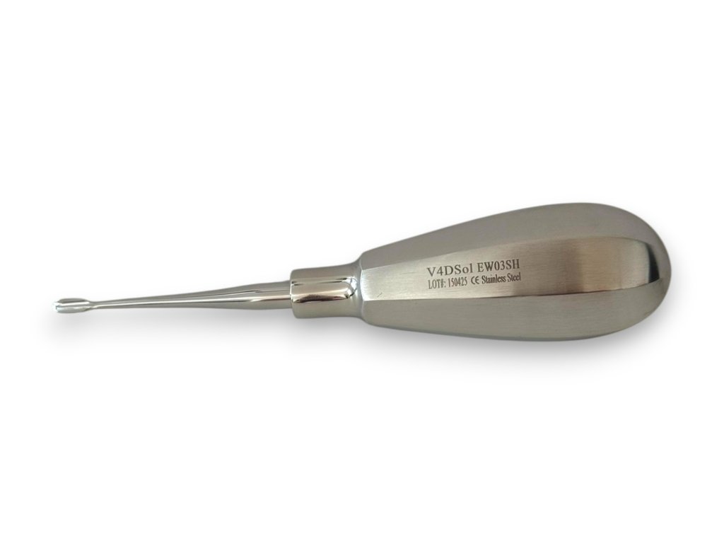 Křídlaté elevátory kombinují křídlatý tvar a tenké ostré řezné hrany, které pomáhají při extrakcích. K dispozici v 5 velikostech. Používá se k páčení a extrakci zubu.
