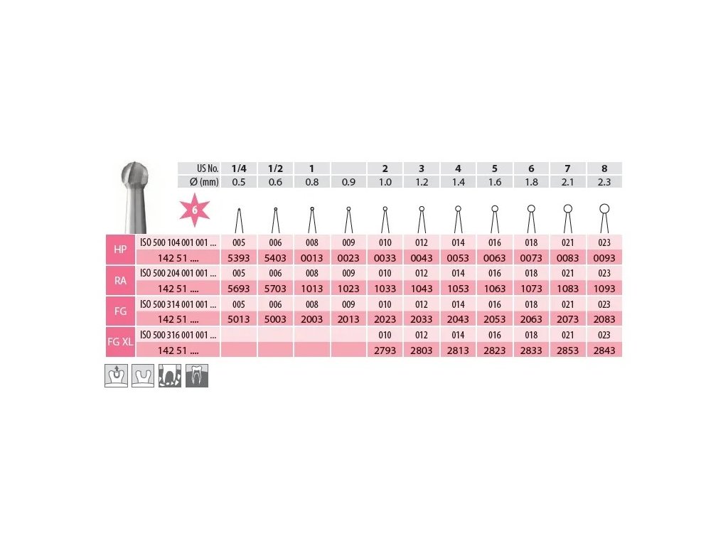 Zubní vrtáček kulička, 44.5mm(HP) - 5ks