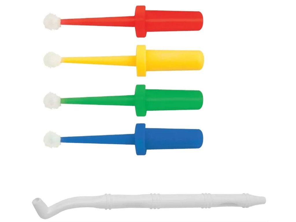 Vysoce kvalitní, flockované, miniaturní aplikátory do samostatného držátka pro přesnou aplikaci leptacích a lepících materiálů, zubních laků a medikamentů.