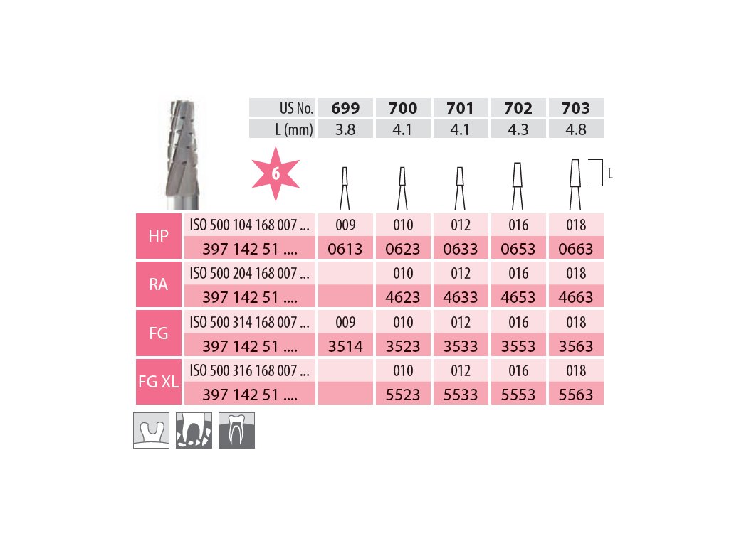 RA vrtáček X-cut Fissure Taper - balení po 5 ks