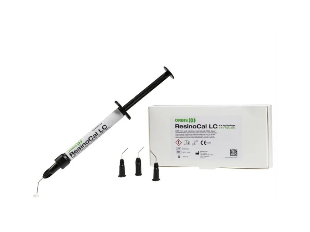 ORBIS ResinoCal LC je světlem tuhnoucí, pryskyřicí vyztužený krycí materiál pulpy s plnidly MTA pro přímé i nepřímé překrytí pulpy pod všemi výplněmi, navržený tak, aby fungoval jako bariéra a chránil pulpu. Díky tixotropním vlastnostem a dodávanému hrotu ORBIS ResinoCal lze ORBIS ResinoCal LC velmi přesně aplikovat i na preparace hlubokých kavit. Materiál pak může být řízeným způsobem vytvrzován světlem.