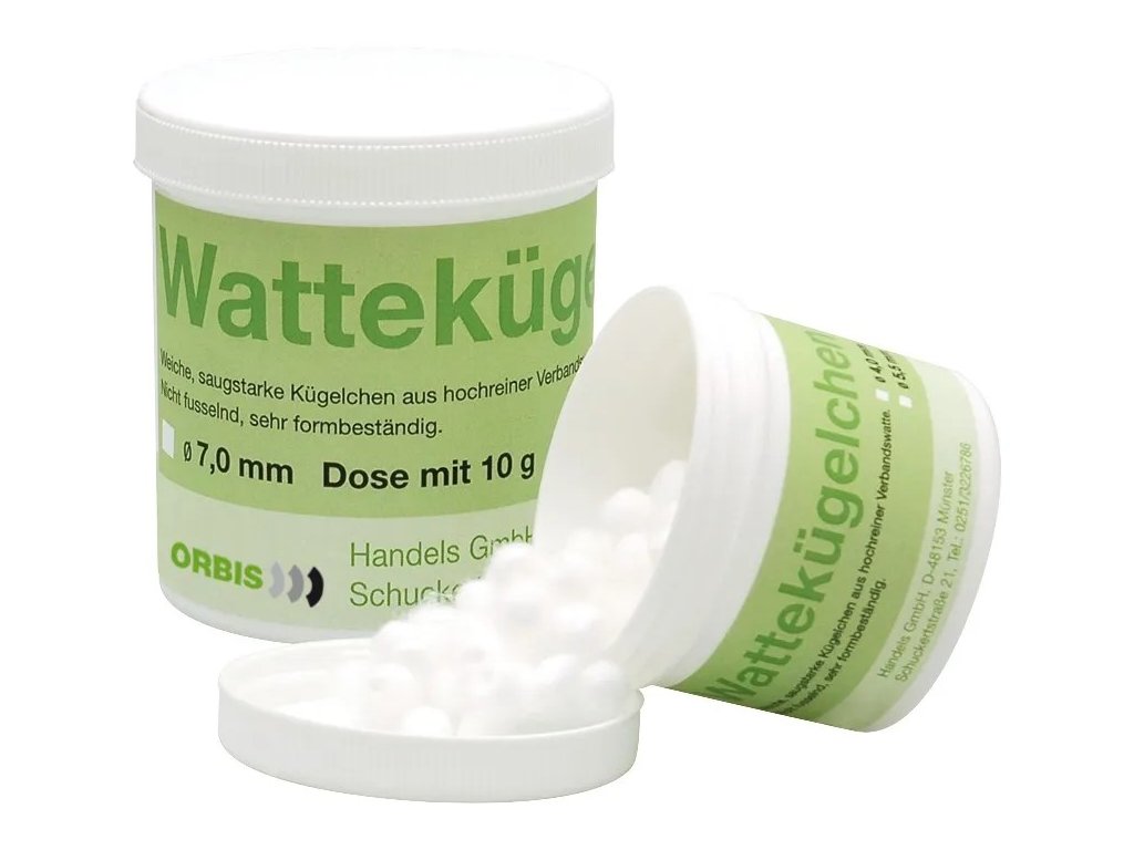 Vatové kuličky s vysokou absorpcí pro sušení a aplikaci léčiv.