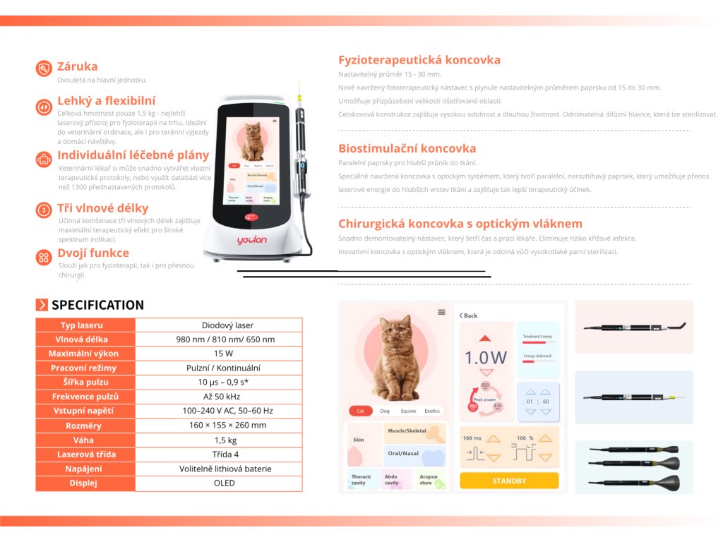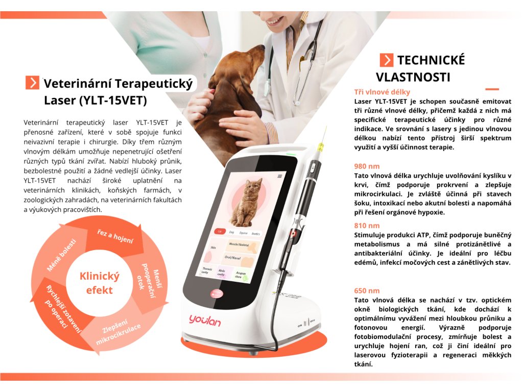 přenosné laserové zařízení, které kombinuje terapeutické a chirurgické využití. Využívá tři různé vlnové délky pro neinvazivní ošetření různých tkání zvířat. Laser proniká hluboko, nezpůsobuje bolest ani vedlejší účinky. Využívá se ve veterinárních klinikách, na koňských farmách, v zoologických zahradách, veterinárních školách a vzdělávacích institucích.