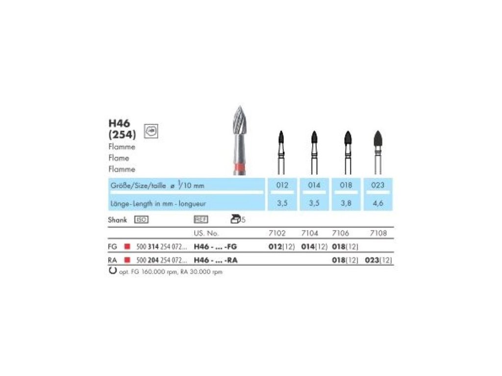 Vrtáček C Finishing Bur, Flame, H46-018-FG, 5ks